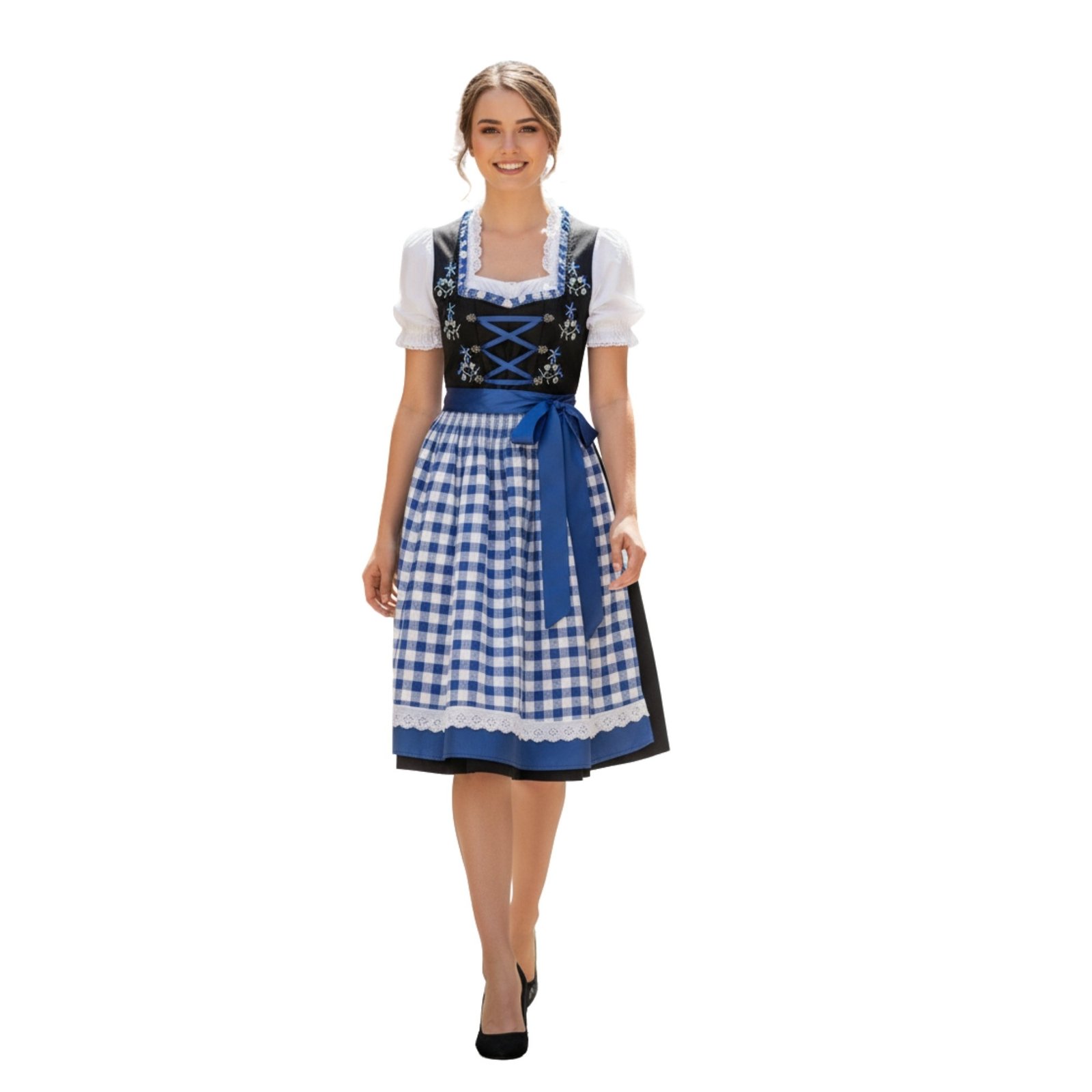 - Dirndl: Let the black cotton Dirndl anchor your look with a crisp white blouse featuring lace or puff sleeves.