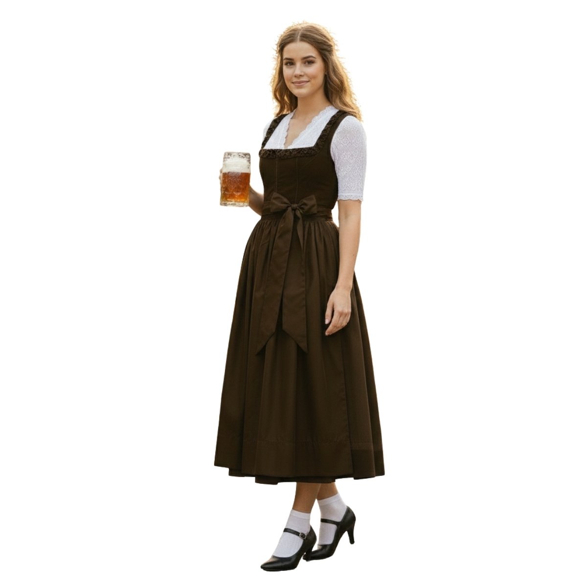 Embrace the true spirit of Bavarian tradition. Order now and become a custodian of cultural heritage through our handcrafted brown velvet dirndl dress!