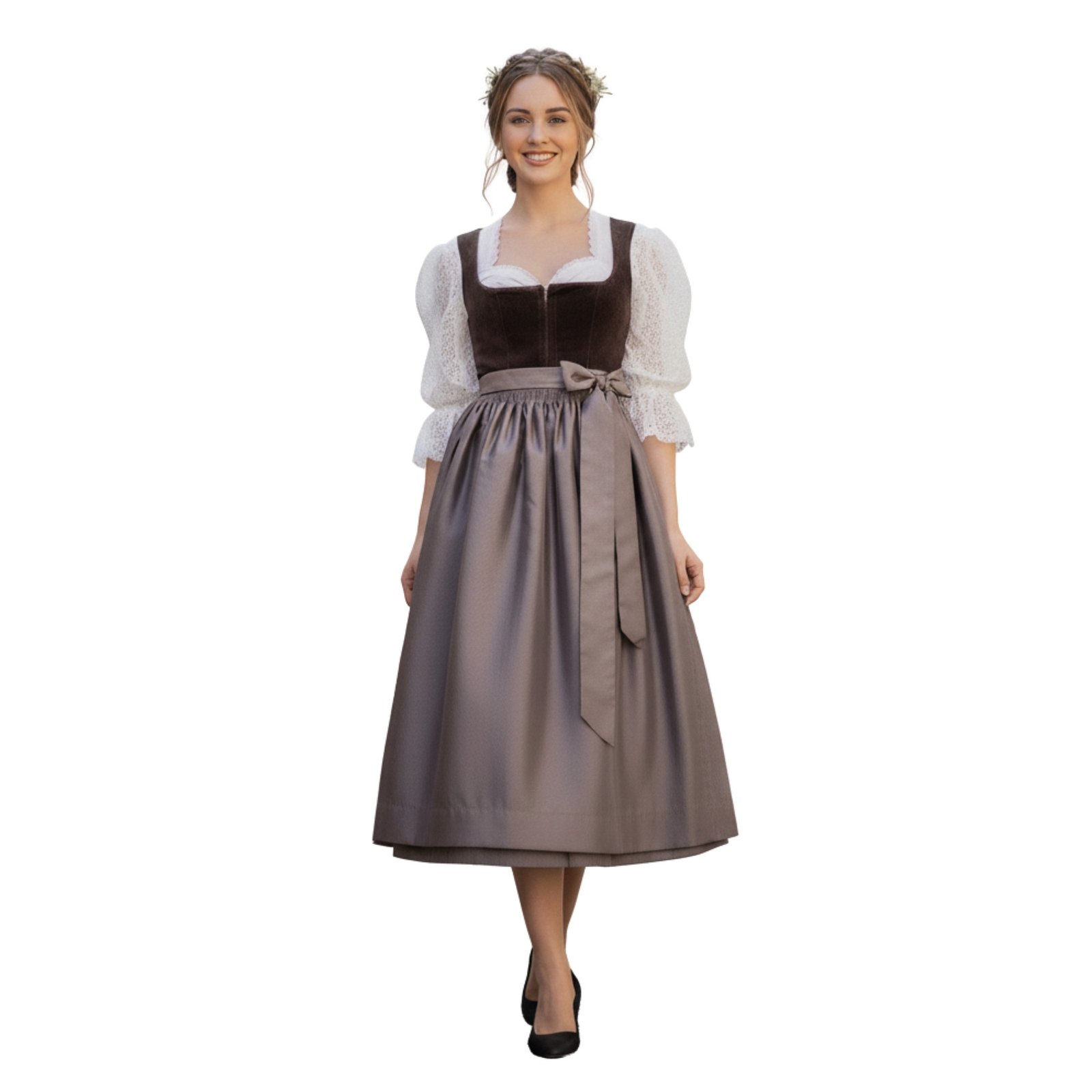 The deep brown hue exudes warmth and sophistication, pairing effortlessly with autumnal palettes or metallic accents. Unlike brighter Dirndls, the brown velvet Dirndl offers understated glamour suitable for both daytime and evening events. - Durability Meets Comfort: