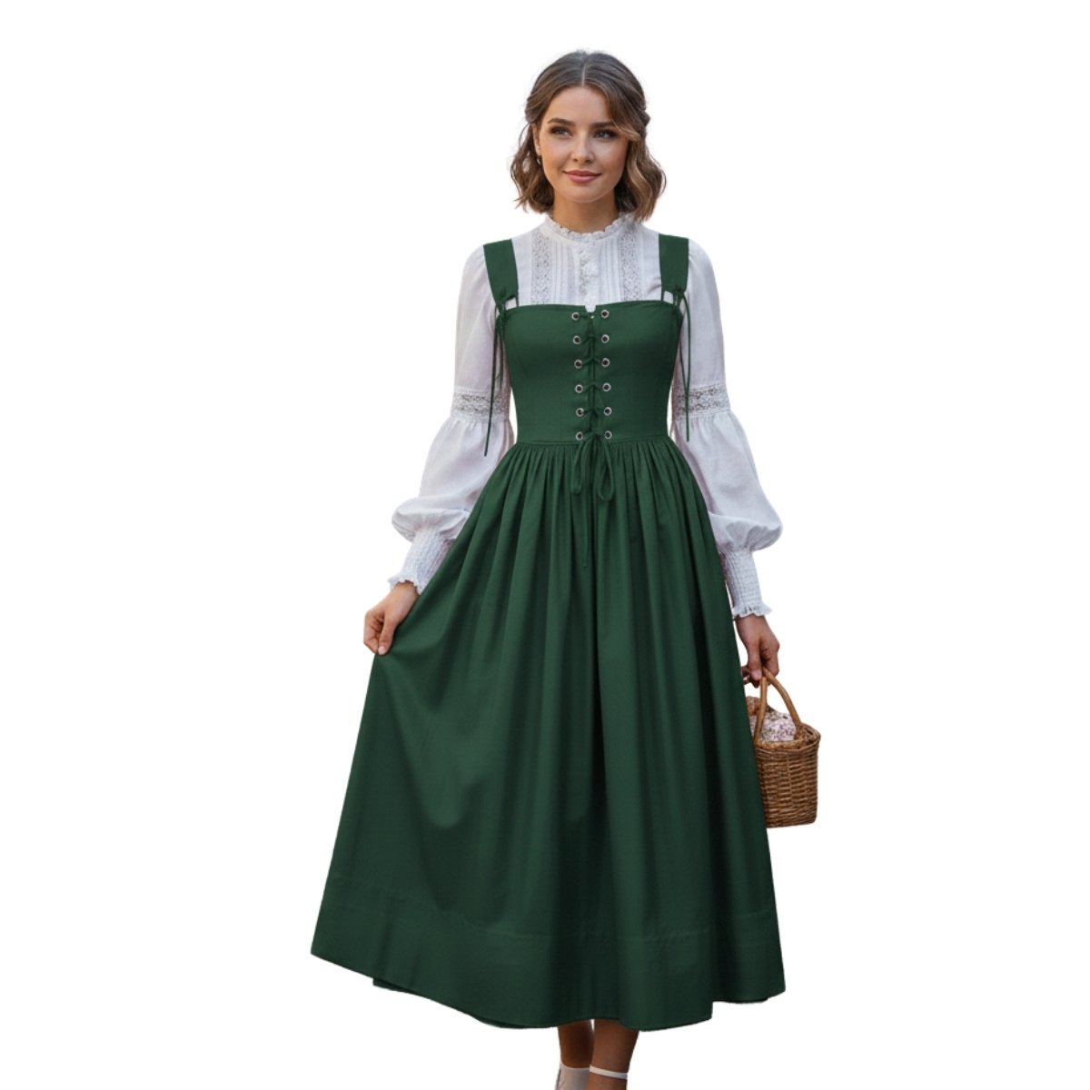 Embrace the timeless beauty of traditional Bavarian fashion with our exquisite Green Cotton Vintage Dirndl Dress – a garment that captures the essence of cultural heritage and natural elegance.