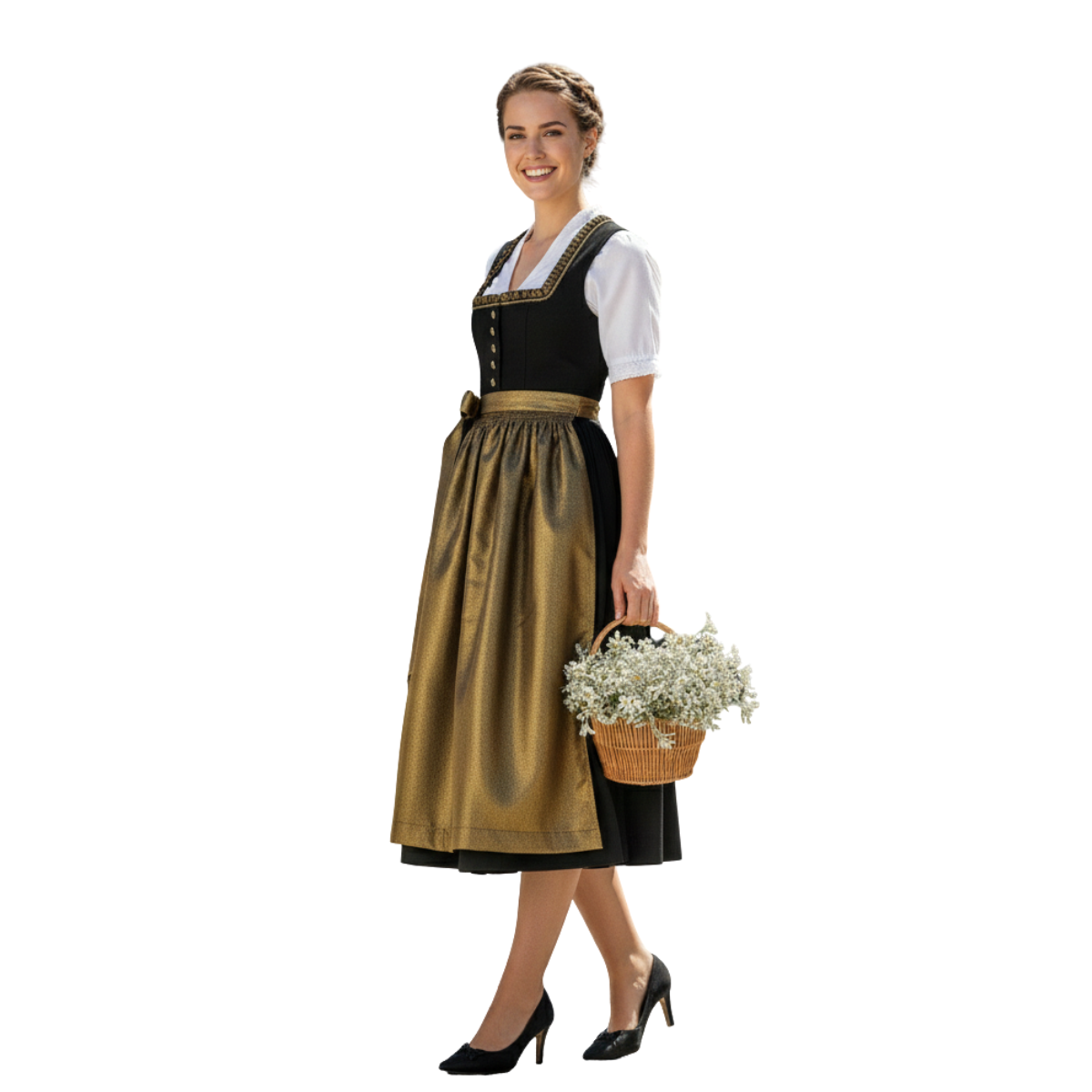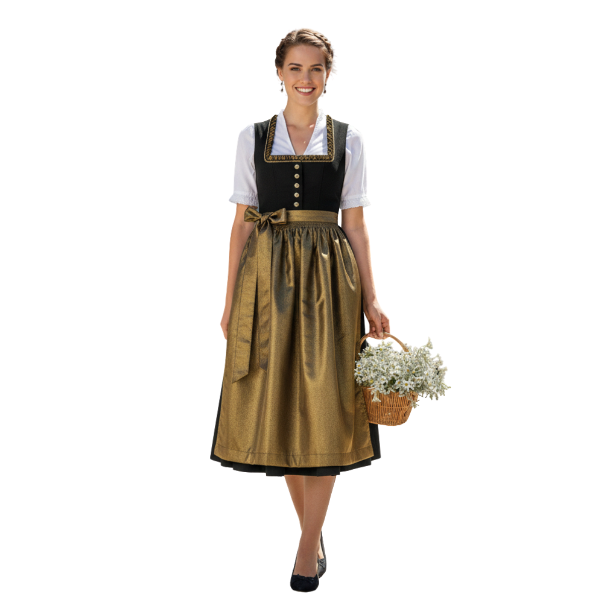 Our Handmade Black Gold Dirndl transcends ordinary fashion, representing the pinnacle of Bavarian textile artistry and couture craftsmanship.